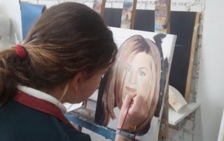 Nuestra alumna Sara Camps (15 años) es muy fan de @jenniferaniston y está haciendo un retrato con óleo 👌