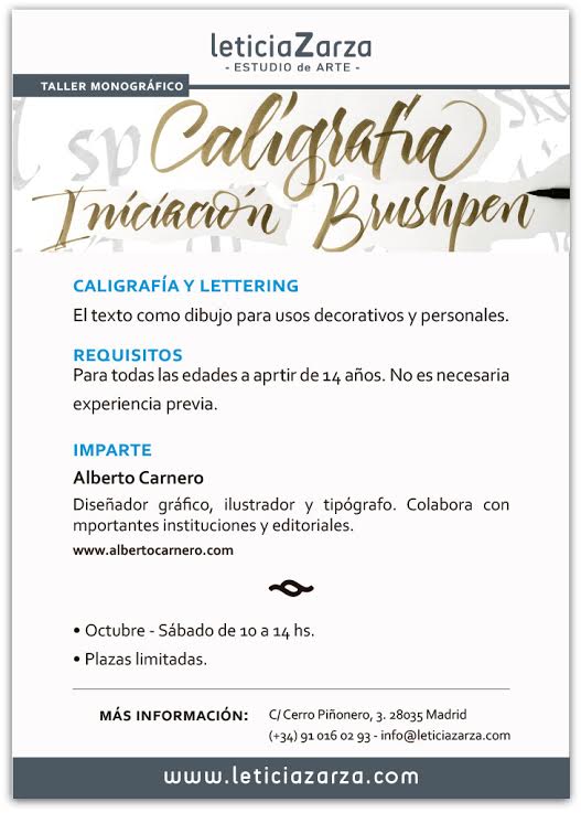 Si quieres ampliar información y reservar tu plaza del Taller de Caligrafía Iniciación Brushpen, puedes ponerte en contacto con nosotros en: info@leticiazarza.com