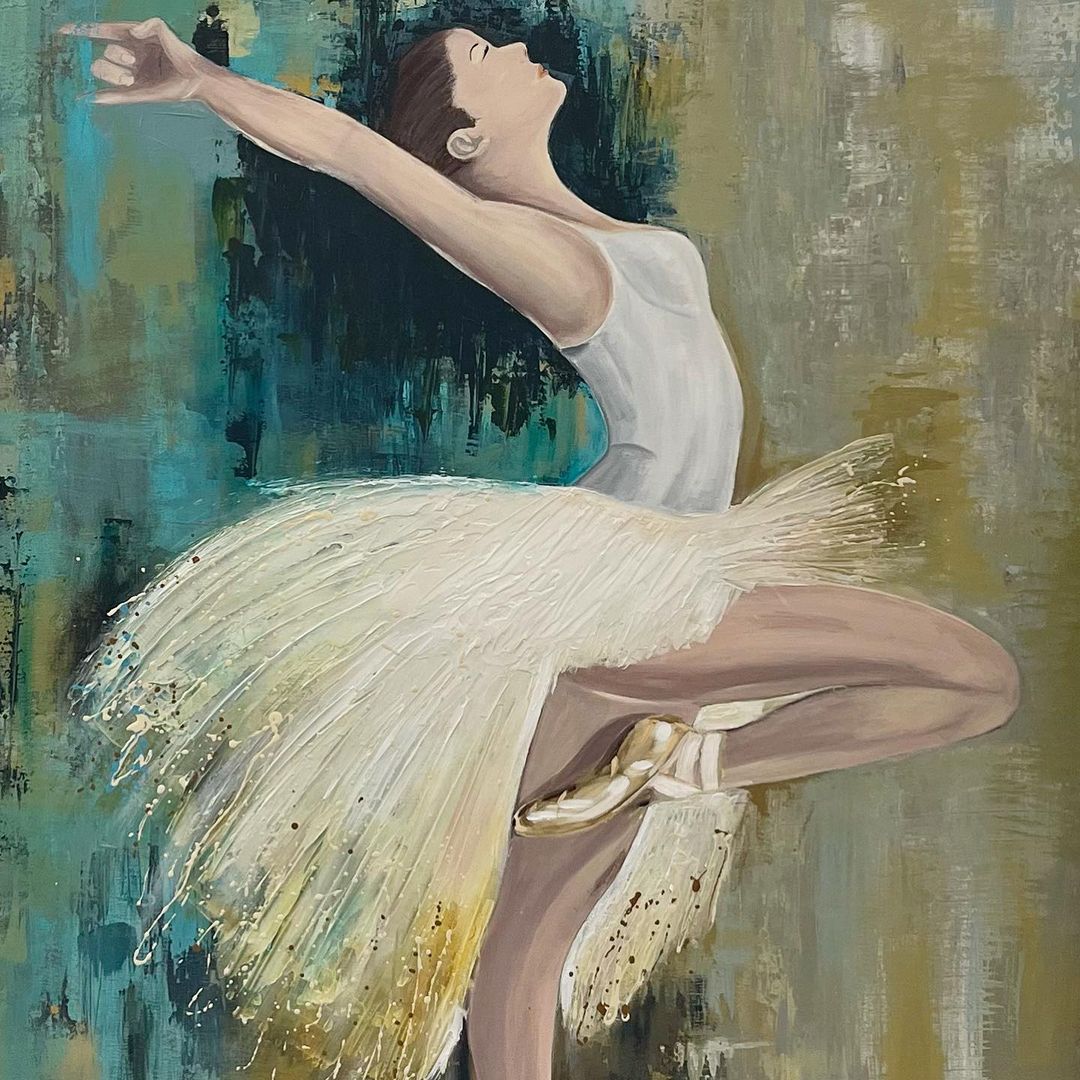 Es un trabajo en el que combina 💞distintas texturas tanto de color como de pintura empastada. Incluso podéis observar la técnica de dripping en el tutú en contraste con las pinceladas difuminadas 🖌️del cuerpo.