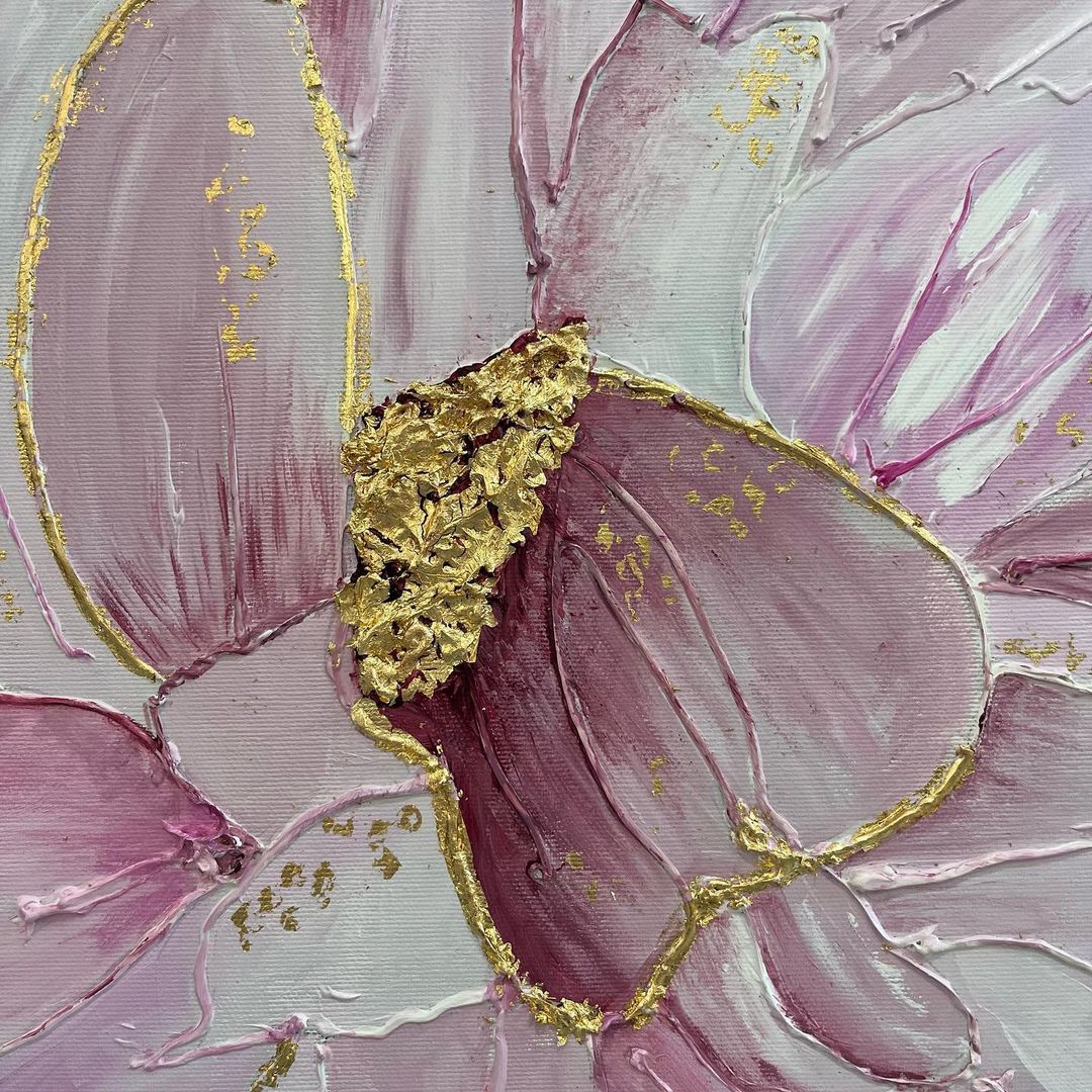 En este cuadro ha usado estuco con una manga pastelera dando volumen a los bordes de los pétalos 🌸