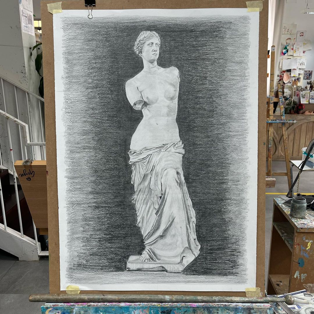 Aquí la esplendorosa e imponente “Venus de Milo” que Emilio Rodríguez ha dibujado con grafitos ✍️de distintas durezas.