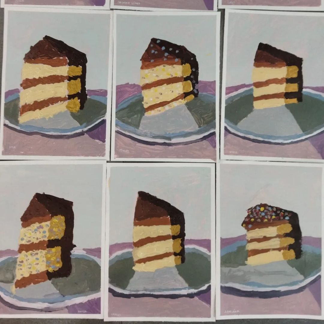 Está semana estamos trabajando con los Benjamines (6-8 años) inspirándonos en la obra del pintor 👨🏼‍🎨Wayne Thiebaud @waynethiebaud_