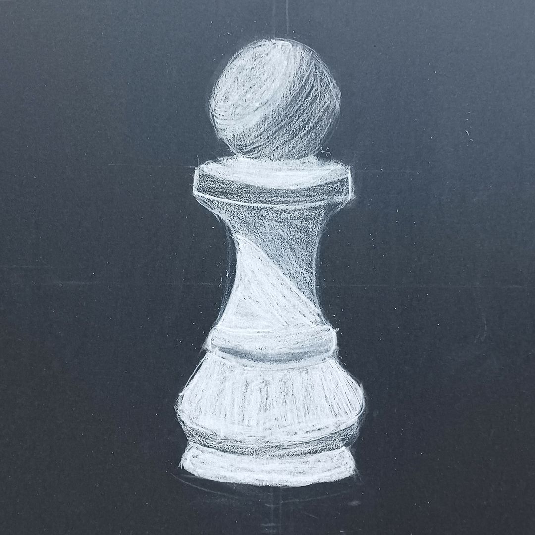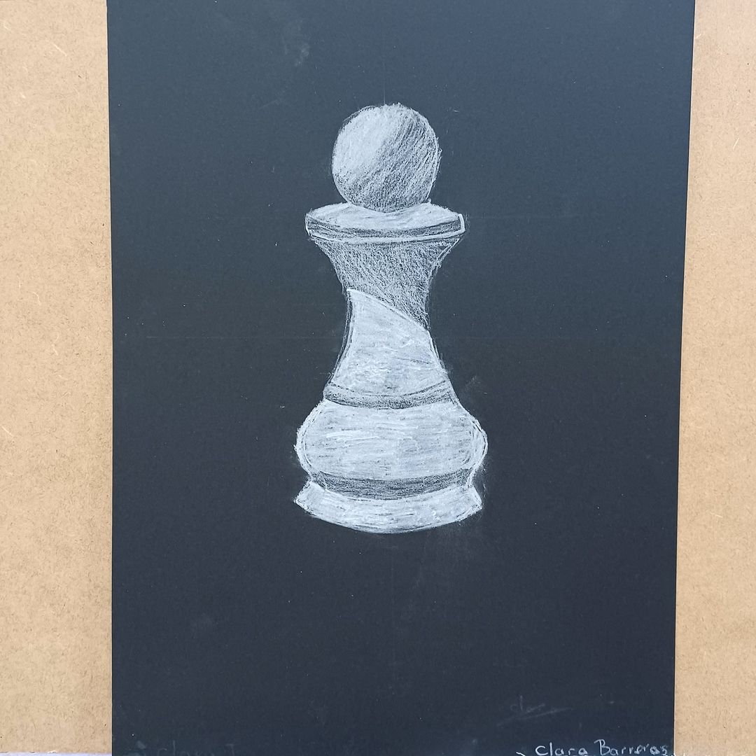 Hoy compartimos uno de los ejercicios de este mes del grupo Junior 🎨🖌️, nuestros artistas de entre 9 y 12 años. Este dibujo, hecho con lápiz blanco sobre cartulina negra, representa unos peones de ajedrez 🖤🤍 y fue creado del natural (still life), trabajando directamente con el objeto real frente a ellos.